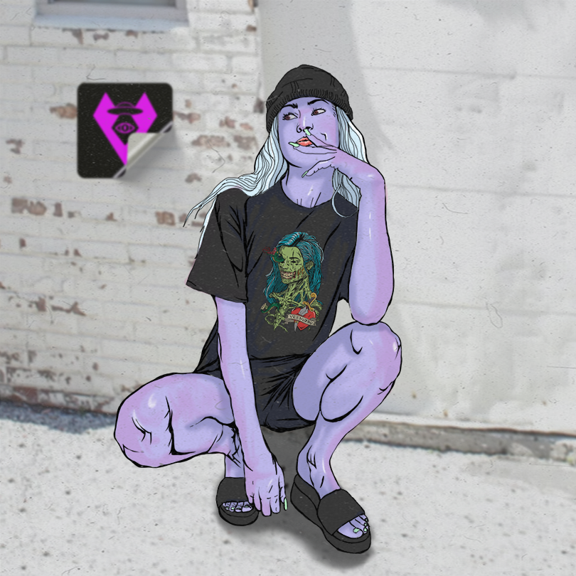 Beleza e decadência: A combinação de elementos bonitos, como o cabelo azul vibrante, com elementos grotescos, como o rosto decomposto, cria um contraste entre beleza e decadência.